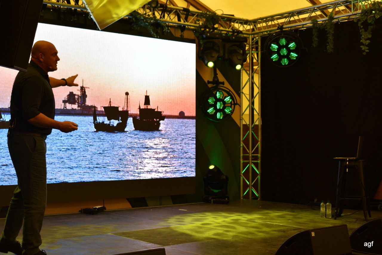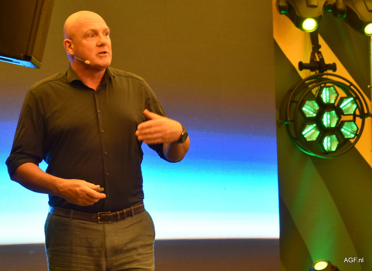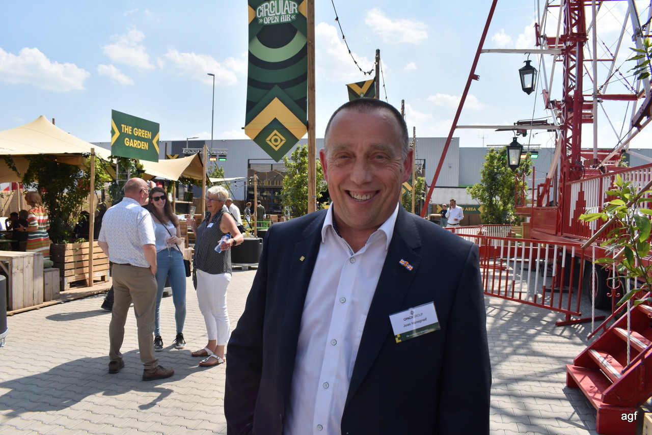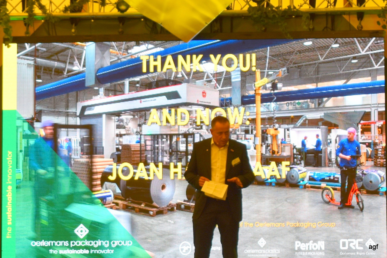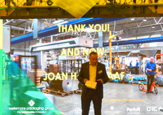 De goed lachse, Joan Hanegraaf eigenaar van de OPACKGROUP, gaat later nog even het podium op.