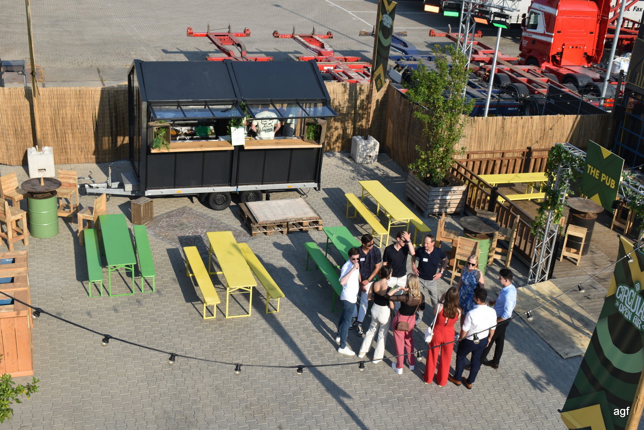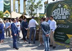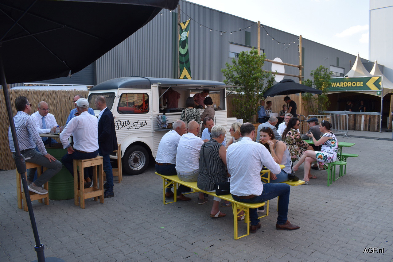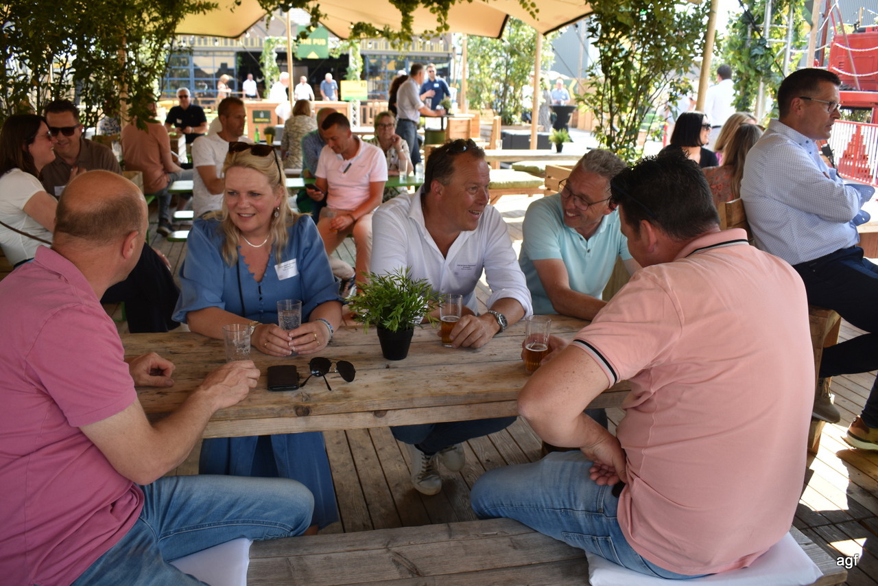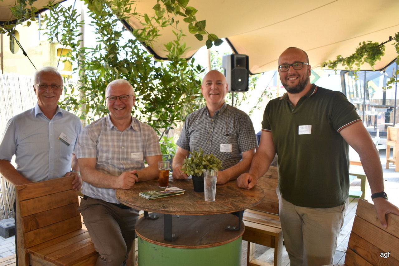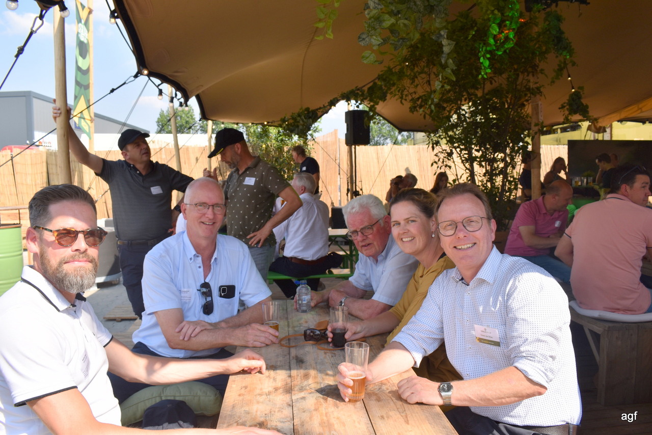 Gerard Colijn van OPACKGROUP gezellig in gesprek met Edwin Meijer, Giel van Erp en Maouan Damrane van All Office Van den Corput,
