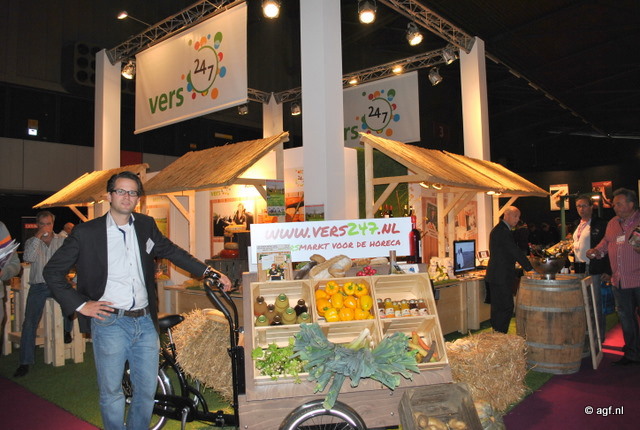 Laurens Claassens van Vers 24/7. Verschillende leveranciers van Vers 24/7 konden hun producten presenteren op de stand.