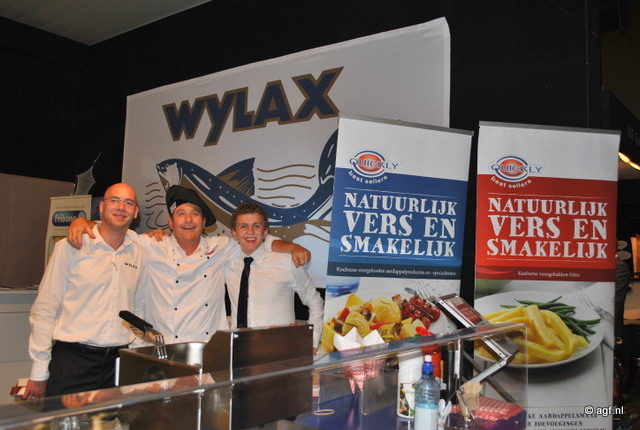 Ivo Nouwens (Wylax), Kees van der Burg en Marco van Helden van Quickly Best-Sellers. Wylax levert verse en diepgevroren visproducten. Quickly levert weer de frieten aan Wylax, dus vandaar ook deze samenwerking op de beurs.