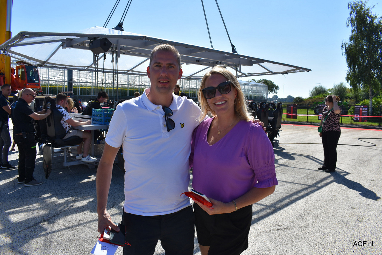 Marc Ehlert en Angelique Goesten met de kassen achter zich