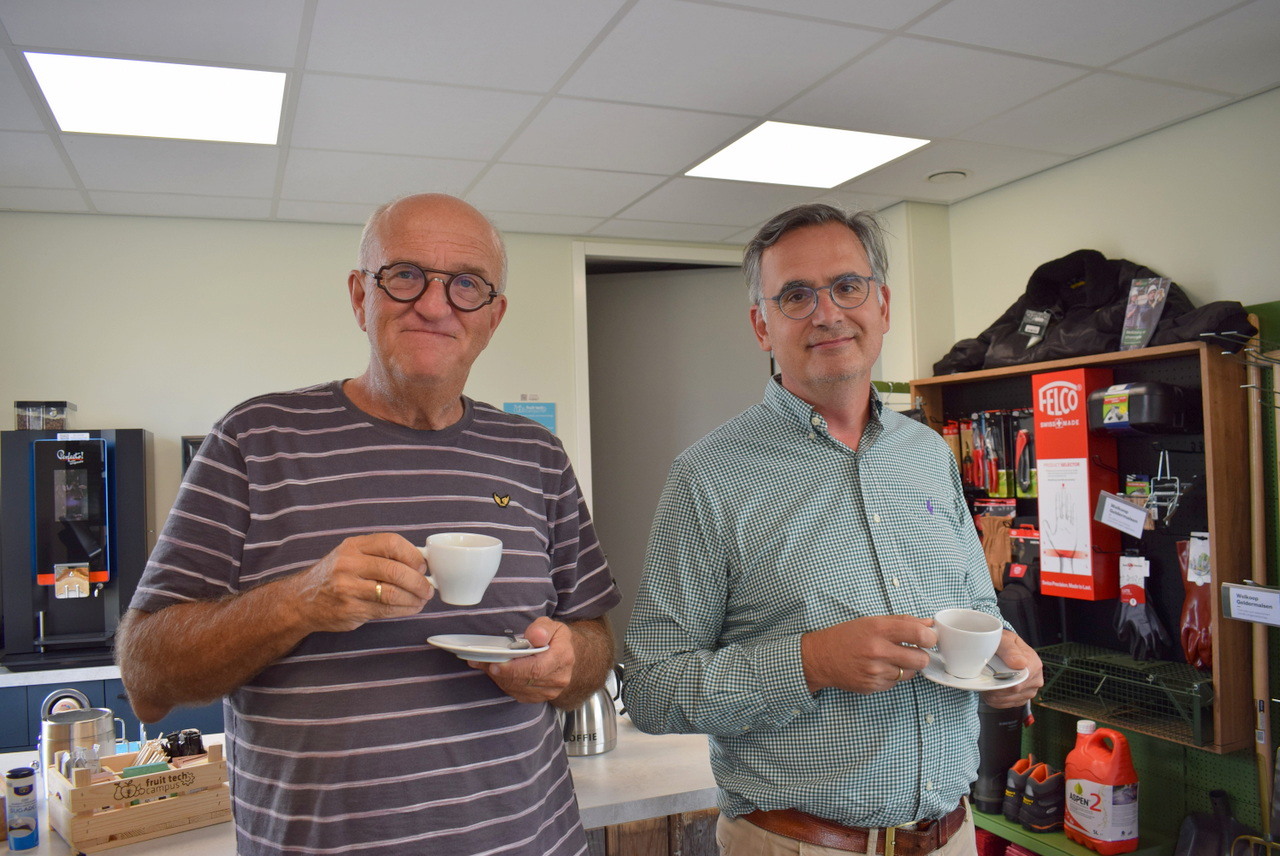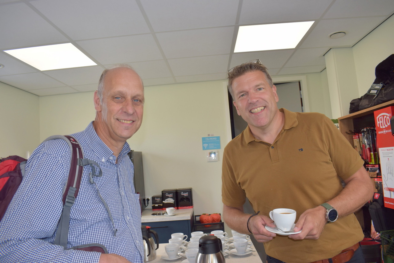 Eerst een kopje koffie voor Gerald Langerak (Gerald Green Support) en Maarten van der Leeden (Rijk Zwaan)