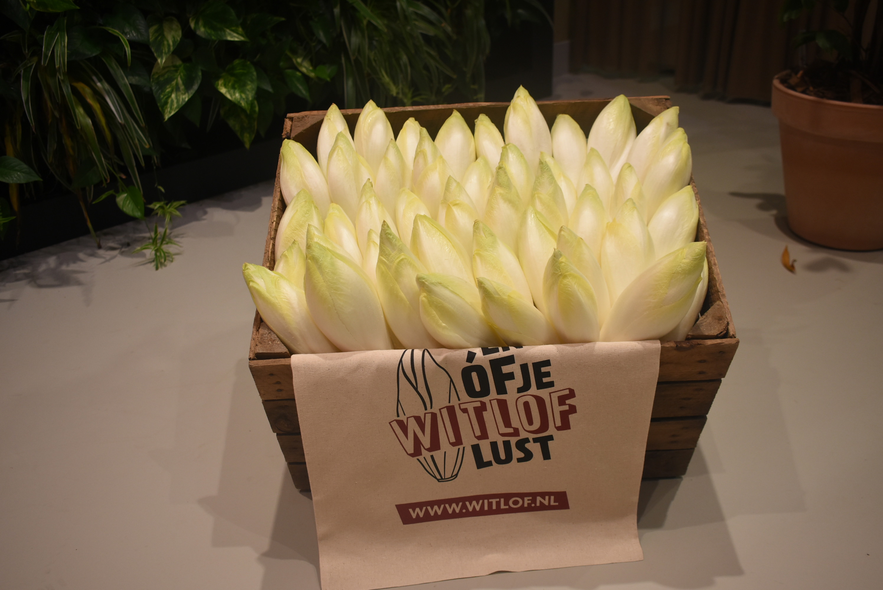Decoratief is er alles aan gedaan om de witlof in de kijker te zetten