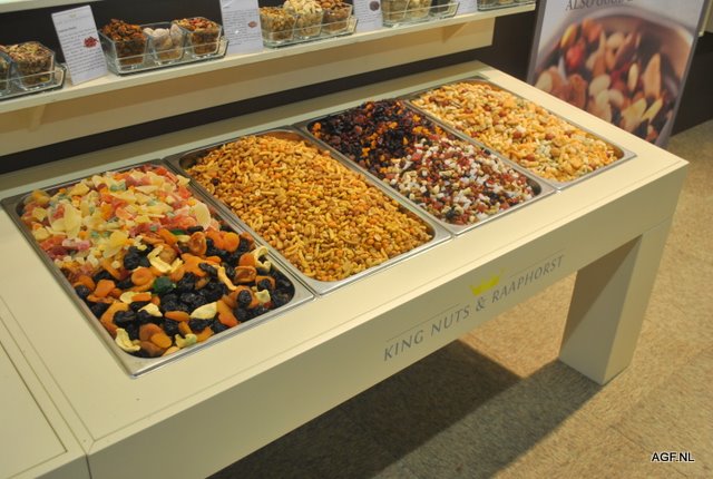 Het Duitse bedrijf Kluth levert gedroogd fruit en noten en diverse combinaties van deze producten
