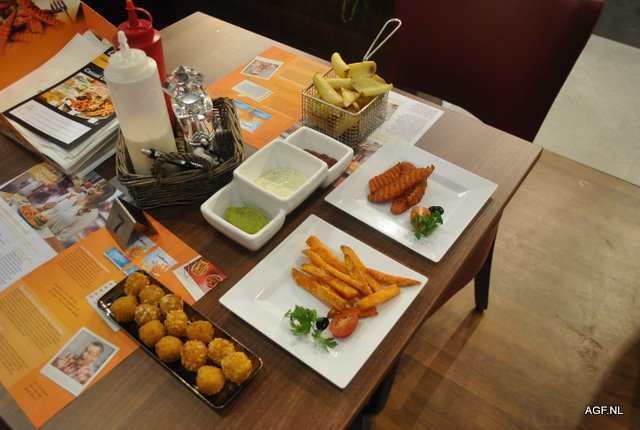 Zo waren er de Potato Dippers, Sweet 'n Savour ribble fries (Taste13), Sweet potato fries en ook de mini cheeseballs.