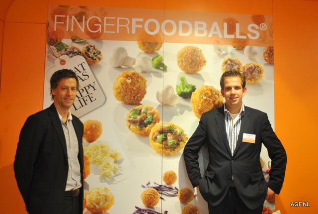 Roel Aldewereld en Jules Klerken van Scelta Products. De Fingerfoodballs die zij presenteerde zijn snacks op basis van groenten. Deze zijn zonder geur-, kleur- en smaakstoffen.