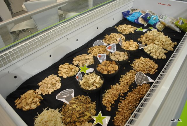 Heidi Goovaerts van Ardo met de nieuwe groentenfrietjes. Ardo had dit jaar weer veel nieuwe producten waaronder de groentenfriet en Italiaanse kruidenmix