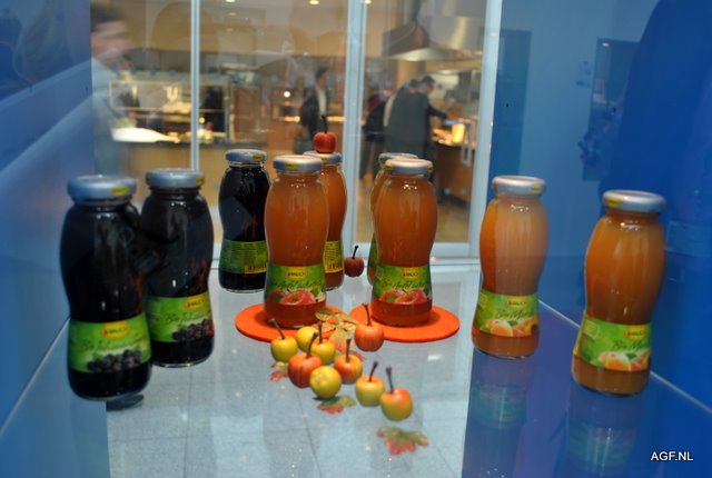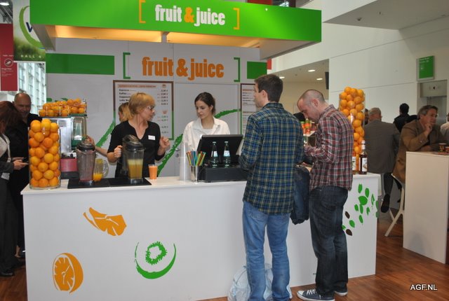 Als de bezoekers van hal naar hal liepen was het mogelijk onderweg wat lekkers te halen. Bijvoorbeeld deze stand van Fruit & Juice.