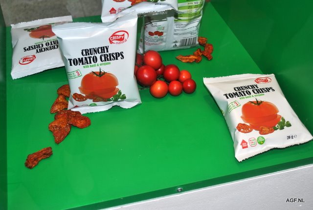 Dhr. Boon van Delinuts met een nieuw product, namelijk tempura chips. Dit is zeewier met een deeglaagje, in 4 smaken verkrijgbaar. Daarbij hebben ze nieuwe producten als groentechips/sticks, volkoren rijstproducten en zijn de kokosblokjes verrijkt met kleur en smaak.