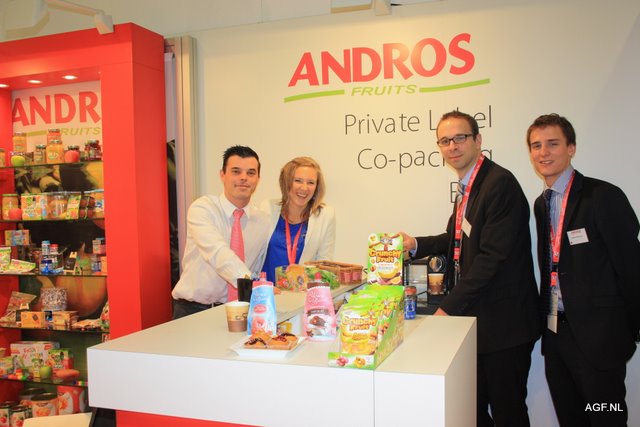 Andros is een wereldwijde speler in fruitwerking en heeft 25 fabrieken over de hele wereld. Ze produceren veel innovatieve producten op AGF-gebied waaronder jam, compotes, appelmoes en vruchtenconserven. Op de foto. V.l.n.r.: Bas van Geldrop, Claire Nauwelaerts, Eric Franssen en Maxime Moureaux