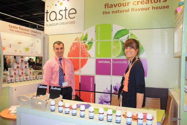 Het bedrijf Taste Flavour Creators is gespecialiseerd in natuurlijke aroma's. Ze bieden een uitgebreid gamma. Ze willen de echte natuurlijke smaak van o.a. fruit terug laten komen in verwerkte producten. De aroma;s zijn bestemd voor artisanale en industriële producenten uit de voedingssector. Op de foto: Arnaud de Beukelaer en Sandrine Braet