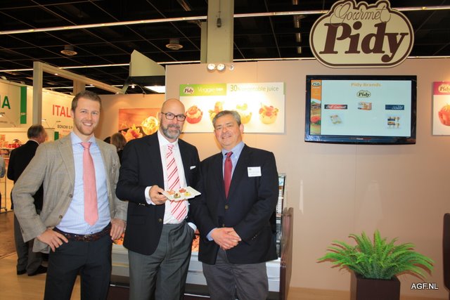Pidy is gespecialiseerd in het produceren van vulklare producten in talloze verschillende deegsoorten. Voor een deel van haar deegproducten gebruikt groenten en fruit als toegevoegde waarde. Zo introduceerde Pidy vorig jaar de veggie en fruity cups die voor 30% uit groenten of fruit bestaan. Op de foto: Kevin Vandersteene, Dominique Demeulemeester en Albert M. Teixeira de Mattos.