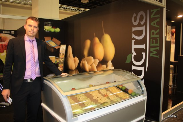 Andreas Theiner van het Italiaanse bedrijf Fructus presenteerde de bewerkte en bevroren hardfruitproducten. Ze leveren aan industrie, gastronomie en retail