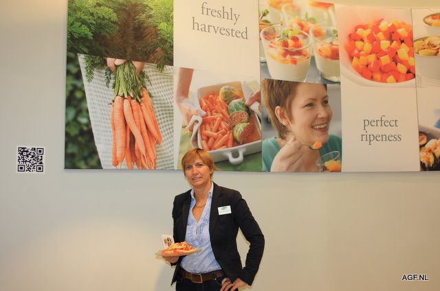 Charlotte Verhelle van Westfro. Het bedrijf levert een totaalgamma van diepvriesgroenten, -fruit en -kruiden.