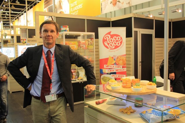 Michel Paternoster van het bedrijf Poco Loco. Zij leveren Tortilla Chips en de bijbehorende dips