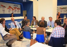 Agristo presenteerde haar brede pakket aardappelspecialiteiten. Helemaal rechts: Filip Wallays in gesprek
