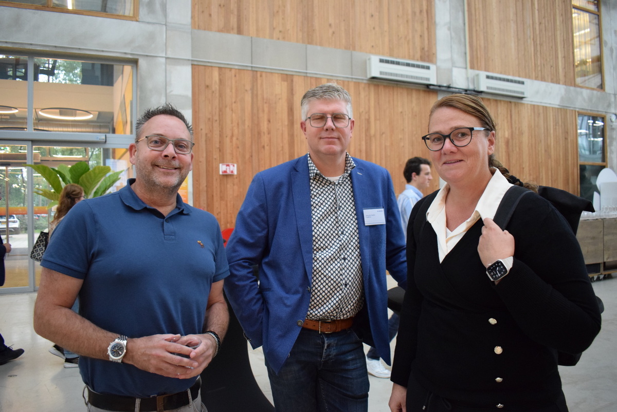 Lisanne Huinder-Wapenaar (Nature's Pride) met Mark Loojenga en Mathijs Peeters (beiden van Staay Food Group)