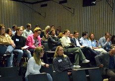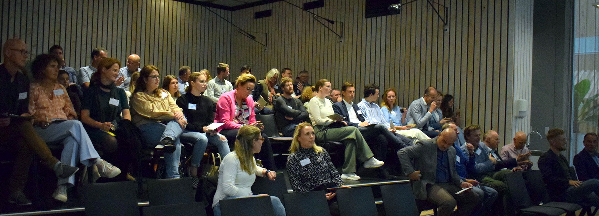 Deelnemers nemen plaats in de zaal voor de presentaties