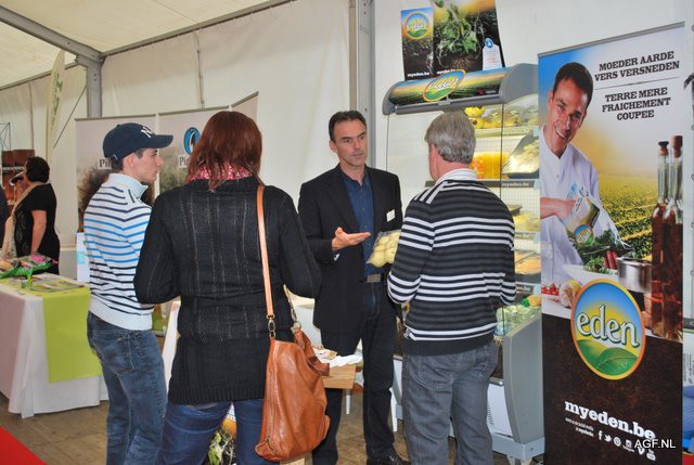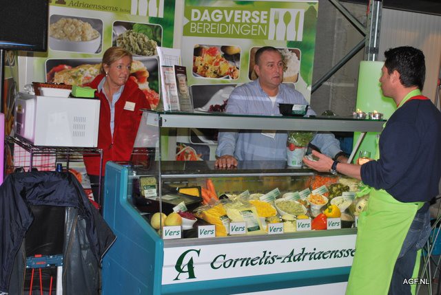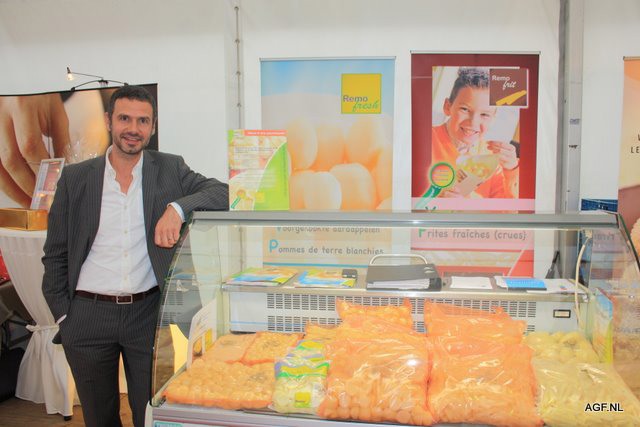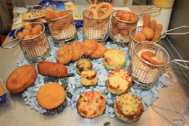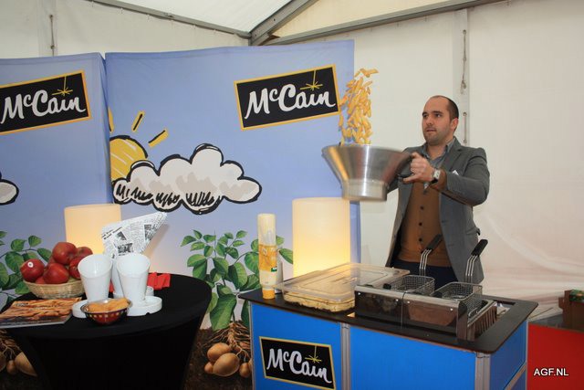 Eerst kwam er een hal met diverse leveranciers van Vawi. De heerlijke geuren kwamen je al tegemoet. Op de foto: Patrick Fieremans van McCain bakt ze bruin