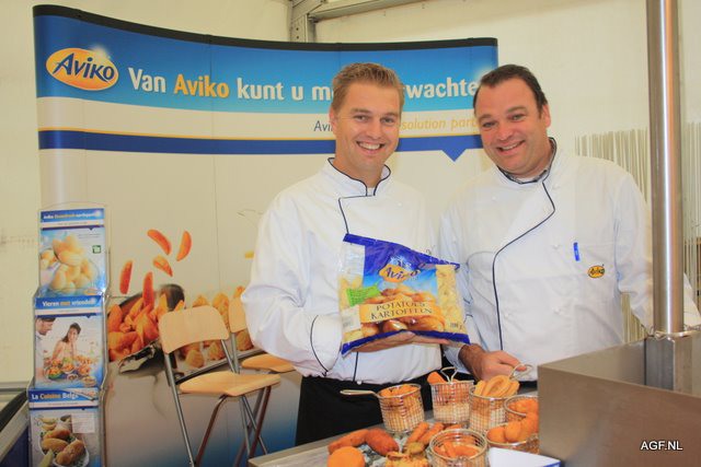 Didier Verschueren en Rik Van den Daelen met de producten van Aviko