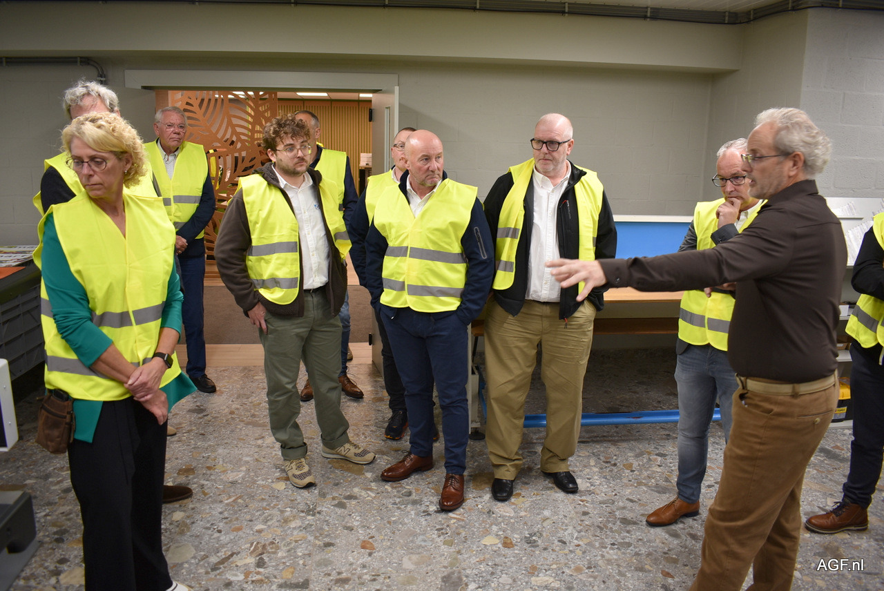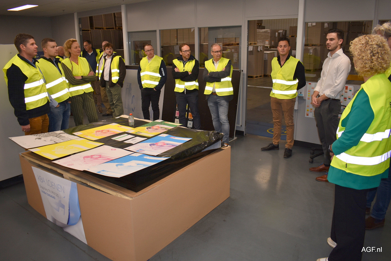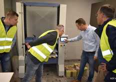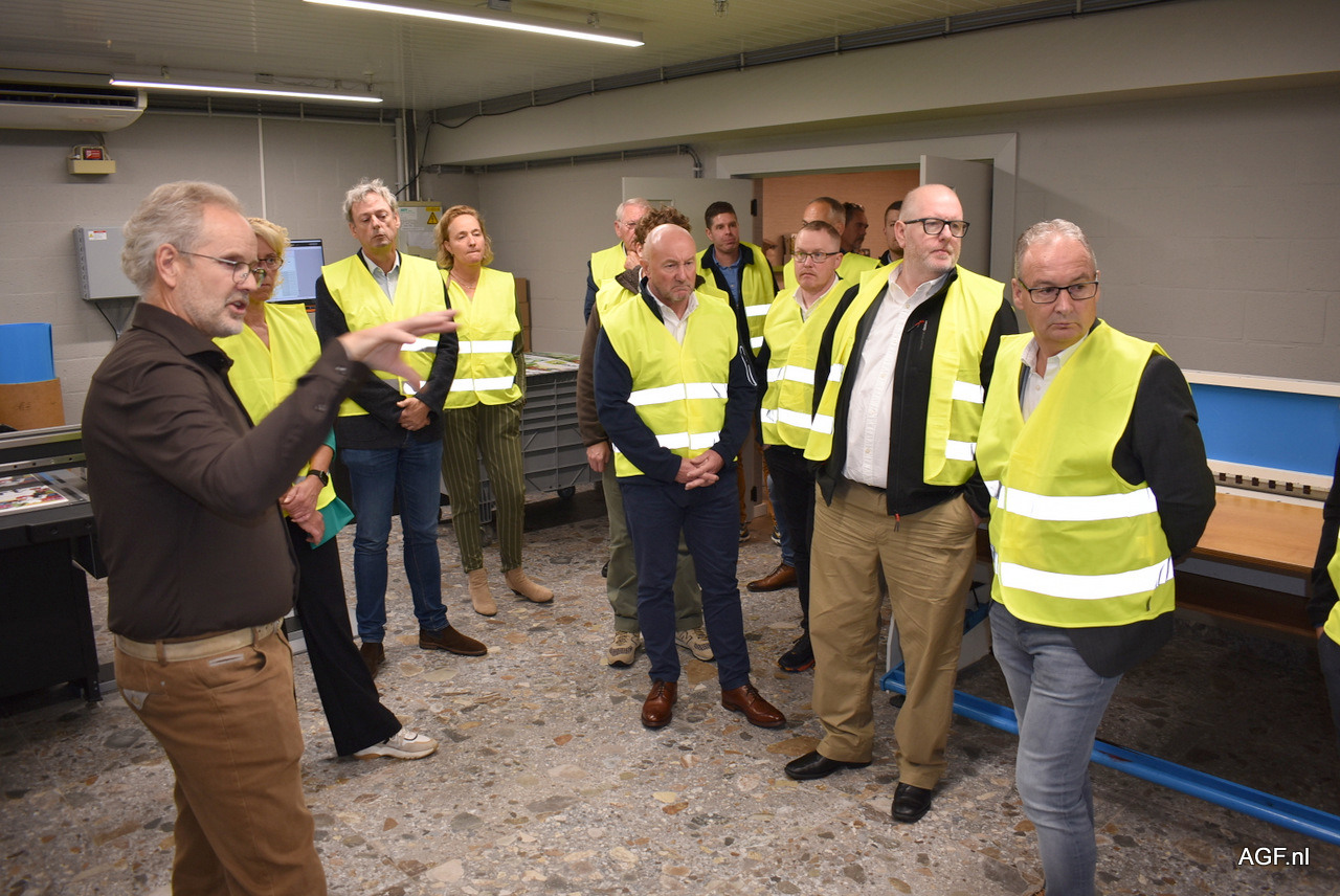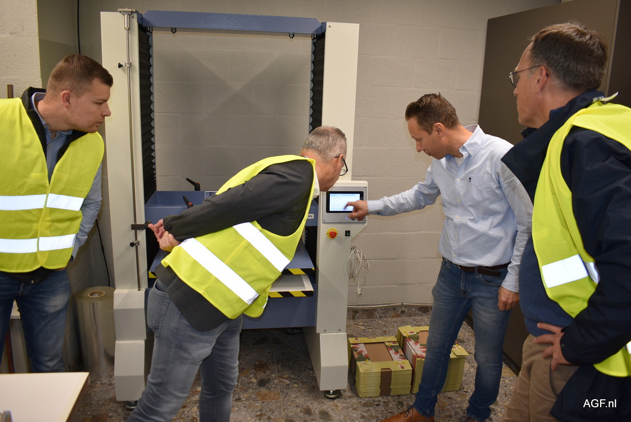 Martijn Fluyt (rechts) leidt de bezoekers rond in het nieuwe Competence Center van Smart Packaging in Meer
