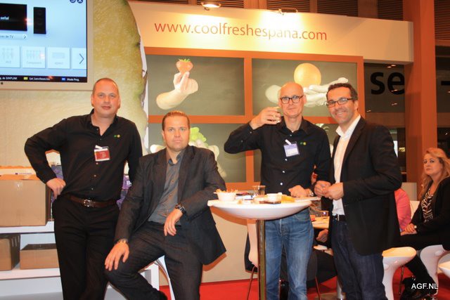 De heren van CoolFresh Spanje met klanten: links: Mario de Goede (CoolFresh), David Jastremsky (Bimaro, Polen), Jean-Paul van Wijk (Coolfresh)