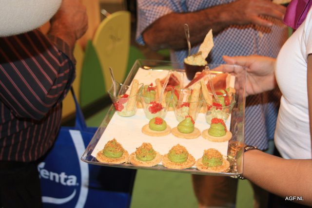 Er werden diverse hapjes uitgedeeld. Hier een specialiteit gemaakt van avocado