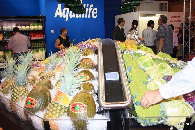 Een presentatie van Aqualife. Aqualife, bekend bedrijf op de Spaanse markt in de koeling van vis, presenteert hier het systeem van koeling en bevochtigen voor groenten en fruit