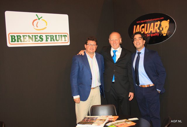 Brenes Fruit exporteert fruit naar heel Europa, waaronder het fruit van het merk Jaguar. In het midden Eddy Jager en rechts Filipe Ravazzini da Silva van Jaguar