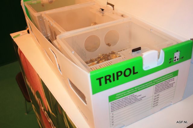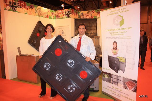 Janny MT presenteert haar speciale opslagbox in gecontroleerde atmosfeer waarin de producten langer houdbaar zijn. Links Céline Kuentz en rechts Nestor