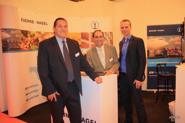Dit is de tweede keer dat het wereldwijde bedrijf Kuehne+Nagel aanwezig is op de Fruit Attraction. V.l.n.r: Peter Franckenberg, Tony Ferreres en een bezoeker