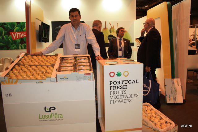 Felipe Silva van het bedrijf Luso Pera stond hier met de Rocha-peren uit Portugal