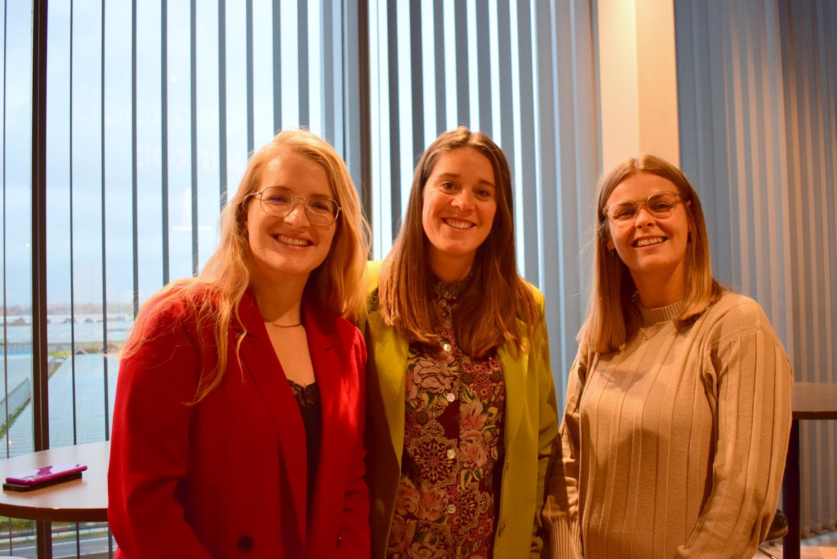 Emmy Marijtsen (Greenery Logistics) met Lieske van der Waals en Isis van Beers (Stichting Nationale Week Zonder Vlees)