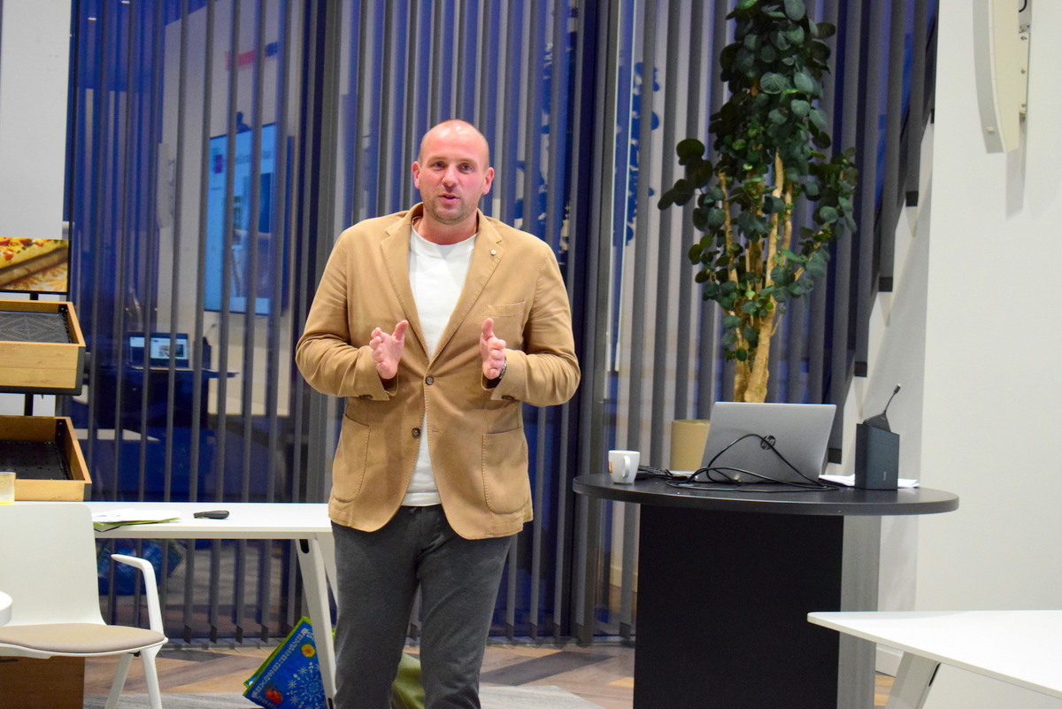 Rob Mulder tijdens zijn presentatie over aubergine en de ontwikkeling van Aubergine Shoarma