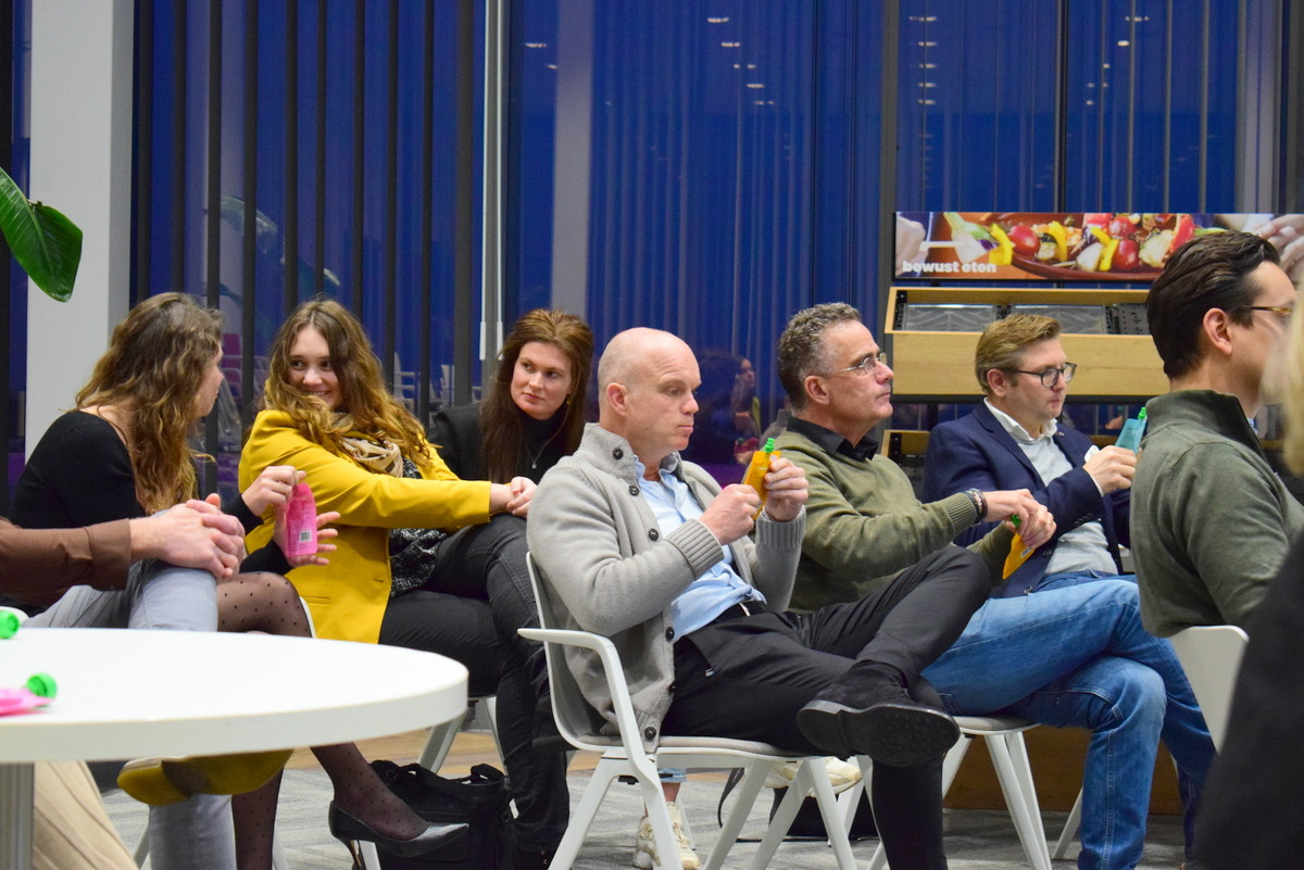 Oganisatrice Wilma met Rob Mulder en Hugo A-Tjak van Purple Pride, Growers United was ditmaal gastheer van AGF-Trendcafé