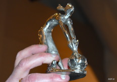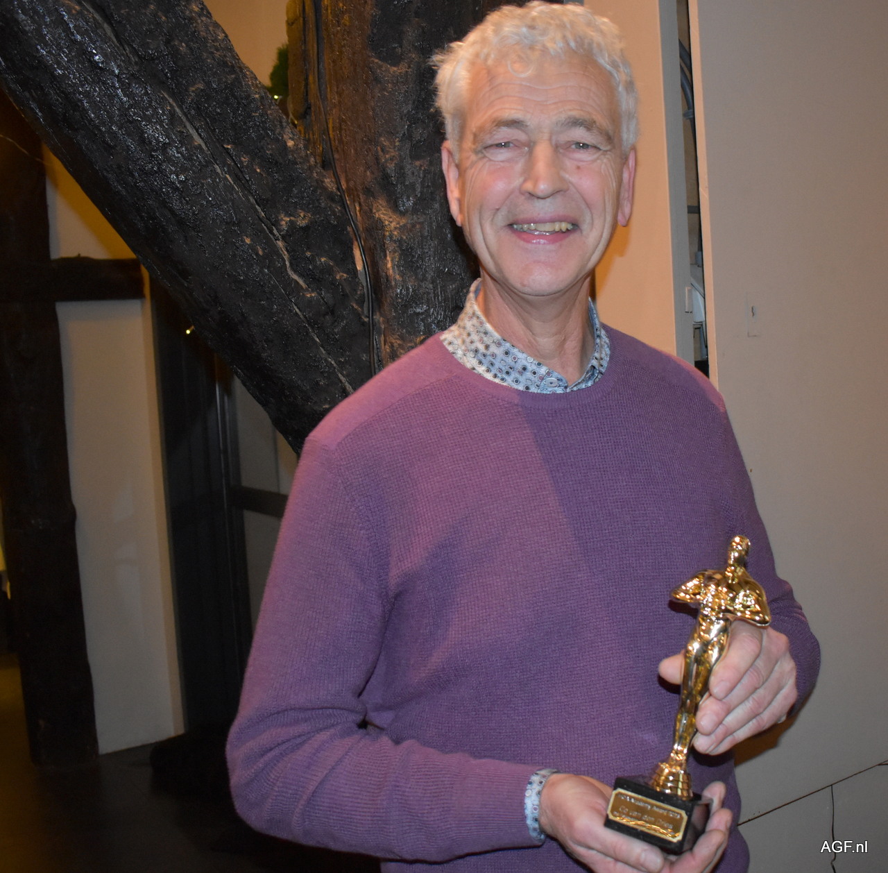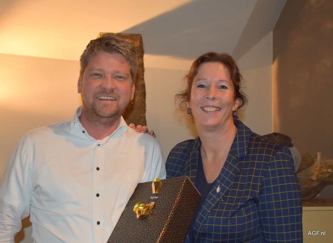 Jan Boone wordt bedankt voor zijn bijdrage aan de noteringen wat hij al 10 jaar doet. Als bedankje een beeldje van 'Het meisje met de ui.' Dit beeld staat in het groot in Ootmarsum.