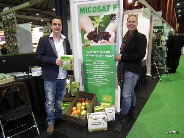 "Microsat NL: Mark en Gerda van der Meer toonden op de BioVak de voordelen van Micsrosat, een biostimulator op basis van mycorrhiza. "Dit product is heel geconcentreerd en verbetert de wortelstructuur en maakt zo de plant sterker", aldus Mark."