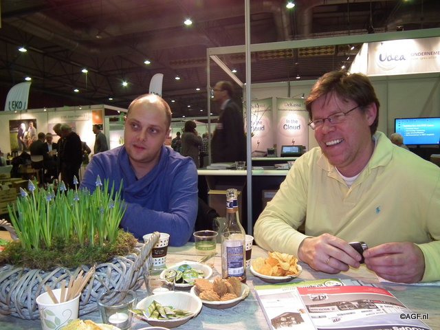 Peter Maljaars (Omnivent) en Cor van Maanen (Geerlofs) onder het motto: de Biovak brengt mensen samen ;)
