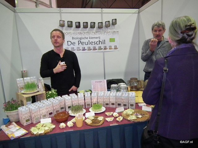 "Erik van der Velde en Adrie Klaassen van biologische kiemerij De Peuleschil. Erik: "Binnenkort zullen er wat nieuwe kiemzaden aan ons assortiment toegevoegd worden."