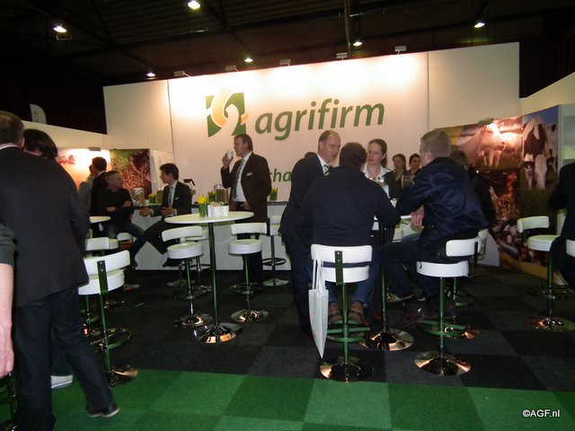 Meerdere gesprekken gaande in de stand Agrifirm.