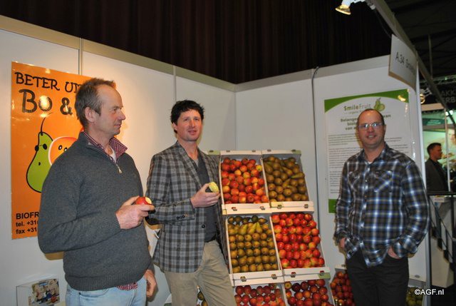 Biofruit, Smilefruit en Stoker Holland hadden samen een stand. Hans Damen en Lody van Osh van Smilefruit bemannen de stand.