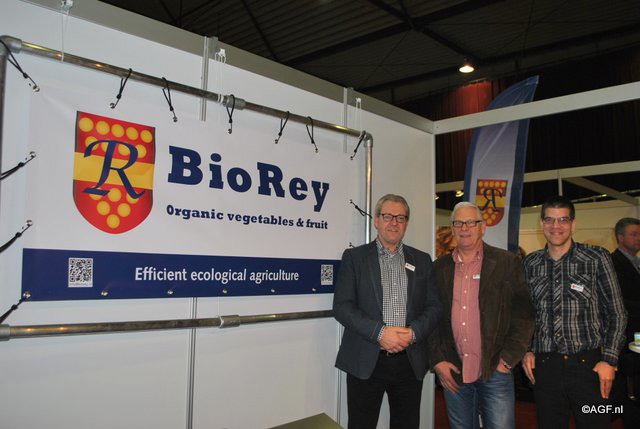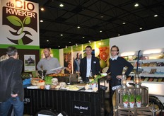 Siem van der Valk (Bioworld), Rudie Ensing (OTC) en Jan David Meuleman (Biobrass) op de stand bij OTC.