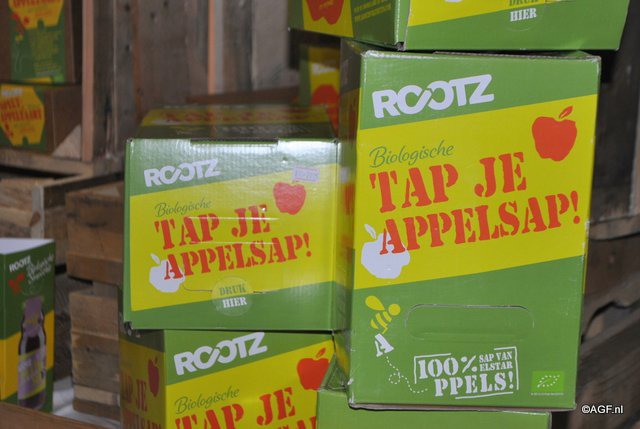 Rootz lanceerde op de BioVak 'Tap je appelsap!'. De 5- literverpakking is geopend 2 maanden houdbaar buiten de koelkast.
