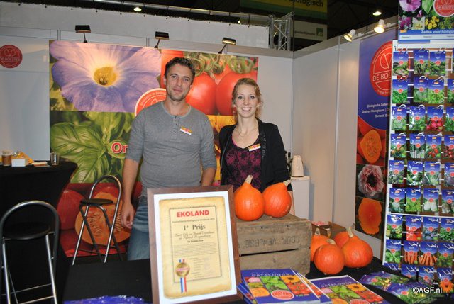 't Hof Welgelegen uit Middelburg kwam ook even op bezoek in de stand van Biojournaal. Rechts Ard van de Kreeke.