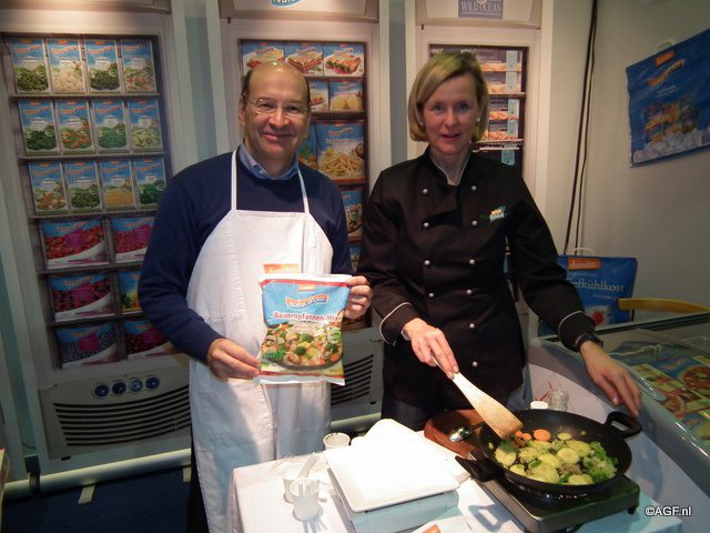 Lazaro Campuzano en Cristiani presenteerden de Hollandse aardappelschotel van Demeter Felderzeugnisse. Dit bedrijf werkt voor de productie van diepgevroren producten samen met boerenorganisaties uit zowel Duitsland als Nederland.