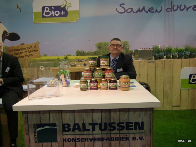 Arie Ermstrang van Baltussen Konservenfabriek. Dit is één van de licentiehouders van Bio+. Zij presenteerden zich gezamenlijk in één stand.