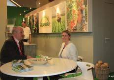 Patrick Stulens, Category manager Fruits & Vegetables van Carrefour in gesprek met Ilse Ceulemans, Verantwoordelijke Marketing van LAVA