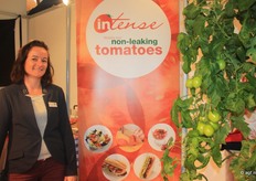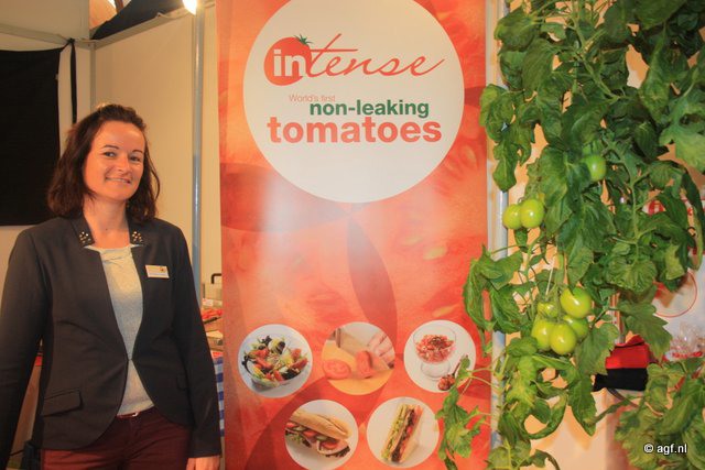 Veronique Savelkoul van het zaadhuis Nunhems stond in de stand van BelOrta bij de Intense-tomaten. Ze geeft aan dat veel bezoekers het product nog niet kennen en hier enthousiast op reageren