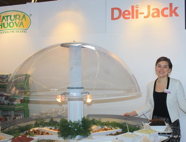 Trijnie Luijk van Deli-Jack presenteerde diverse tapas-hapjes. Deli-Jack heeft een assortiment ontwikkeld van gedroogde, gegrilde en geroosterde groenten. In deze stand werden vijf merken gepresenteerd die worden verdeeld door Quick Silver Trading
