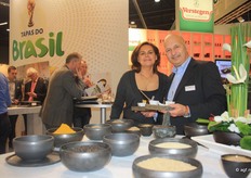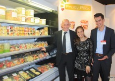 Quick Silver Trading S.A. verdeelt de producten van: Fruityline, FruityPack, Deli Jack, Natura Nuova en Labacca. Deze vijf merken werden ook gezamenlijk gepresenteerd op Tavola. Op de foto: Daniel Zylbersztejn, Pamela Nourieli en William de Vries
